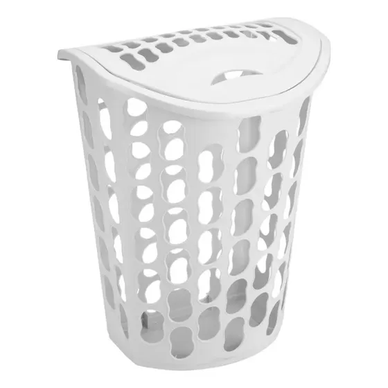 Cesto De Roupa Plastico 40 Litros Lavanderia C/ Tampa Cores Branco Lisa