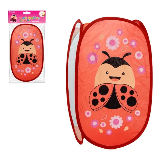 Cesto De Roupa Dobrável Telado Organizador Infantil Vermelho