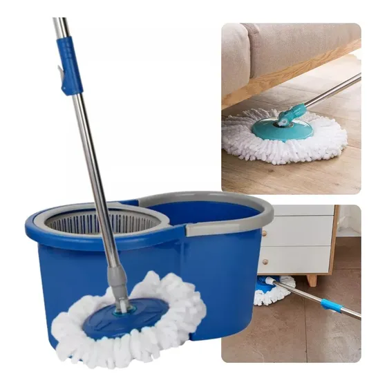 Mop Giratório 360° Rodo Mágico Esfregão E Balde Para Limpeza Azul