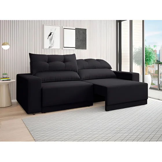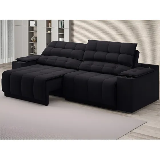 Sofá Com Usb Retrátil E Reclinável Samurai 2,50m Cor Preto