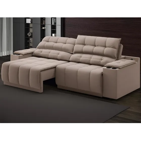 Sofá Com Usb Retrátil E Reclinável Samurai 2m Cor Bege