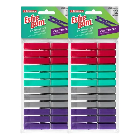 2x Prendedor Para Roupas Em Plástico 12 Unidades Bettanin