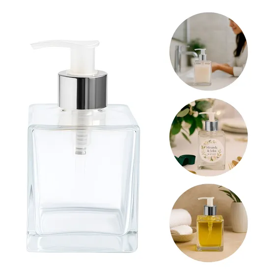 06 Porta Sabonete Vidro 250ml Retangular Super Luxo Cromada