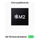 Com a potência do chip M2 de última geração, o novo MacBook Air combina desempenho espetacular e até 18 horas de bateria em uma estrutura de alumínio muito fina*. • Chip M2 com desempenho de última geração da CPU, GPU e aprendizado de máquina • CPU de 8 núcleos mais rápida e GPU de até 10 núcleos para executar tarefas complexas2 • Neural Engine de 16 núcleos para tarefas de aprendizado de máquina avançado • Memória unificada mais rápida de até 24 GB para deixar tudo superveloz • Até 20% mais rápido para aplicar filtros e efeitos de imagem2 • Até 40% mais rápido para editar timelines de vídeo complexas2 • Até 18 horas de bateria para acompanhar seu dia1 • Design sem ventoinha para você ouvir só o que importa • Tela Liquid Retina de 13,6 polegadas com 500 nits de brilho e ampla tonalidade de cores P3 para imagens vibrantes e detalhadas3 • Câmera FaceTime HD de 1080p com o dobro de resolução e desempenho em pouca luz • Conjunto de três microfones para capturar sua voz, não os ruídos à sua volta • Sistema de som com quatro alto-falantes e Áudio Espacial para uma experiência sonora envolvente • Compartilhamento de conteúdo entre o iPhone e o Mac • Porta MagSafe para recarga, duas portas Thunderbolt e entrada para fones de ouvido • Magic Keyboard retroiluminado com Touch ID para desbloquear o aparelho e fazer pagamentos com segurança • Conexão sem fio Wi-Fi 6 rápida • Armazenamento SSD ultrarrápido para abrir apps e arquivos num instante • macOS Monterey para você se conectar, compartilhar e soltar a criatividade em todos os seus aparelhos Apple • Disponível em meia-noite, estelar, cinza-espacial e prateado Itens inclusos: MacBook Air de 13 polegadas, Adaptador de energia USB-C de 30W(chip M2 ou M3 com GPU de 8 núcleos) ou Adaptador de energia USB-C de 35W com duas portas(chip M2 ou M3 com GPU de 10 núcleos e 512 GB de armazenamento), Cabo de USB-C para MagSafe 3(2m). Avisos legais Nem todas as configurações estão disponíveis em todos os países. Os dados de desempenho variam de acordo com o modelo e a configuração. *A duração da bateria varia de acordo com o uso e a configuração. **Em comparação com a geração anterior. ***A tela do MacBook Air de 13,6 polegadas tem bordas arredondadas na parte superior. Quando medida como um retângulo, a tela tem 13,6 polegadas na diagonal. A área real de visualização é menor. Aviso legal • A duração da bateria depende do uso que se dê ao produto.