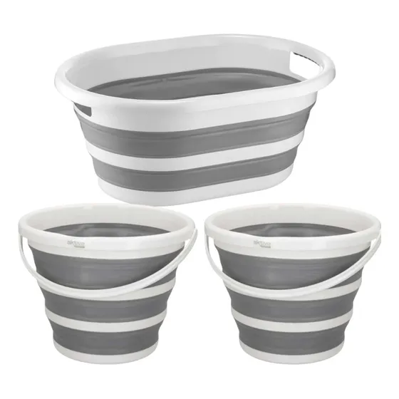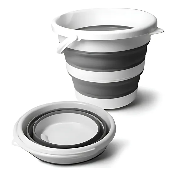 Balde Dobrável Retrátil 10l + 2 Pares Luvas Limpeza Multiuso Cinza