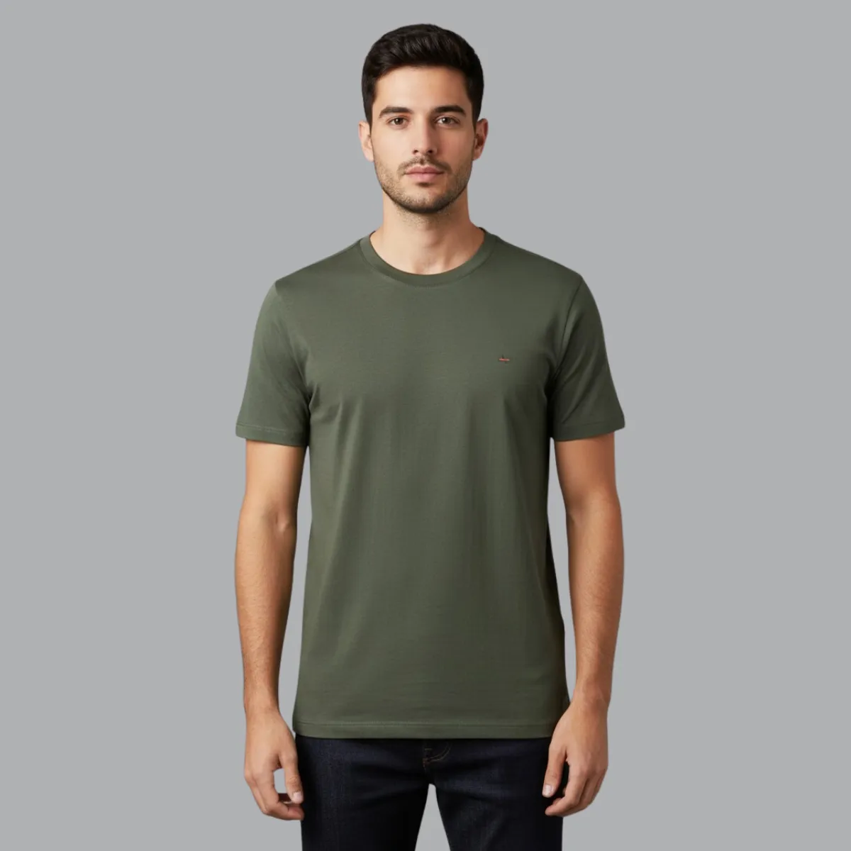 Camiseta Aramis Masculina Slim Verde-militar Algodao Lisa