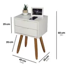 Kit 2 Mesas de Cabeceira Retro Branco 40cm 2 Gavetas Fl Decor