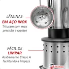 5 anos de experiência no mercado e entre os melhores vendedores do Mercado Livre! Tenha tranquilidade de comprar com quem está disposto a te oferecer o melhor atendimento, caso tenha algum problema após a compra, conte com nossa equipe de pós-venda para solucioná-lo! A loja KD Eletro tem a missão de garantir a satisfação total do seu cliente, tanto nos produtos quanto no atendimento. Assim estabelecendo uma relação de confiança! Com o incrível Liquidificador Alta Rotação KD Eletro você terá a praticidade para fazer qualquer receita. Com capacidade útil para 2,0 litros, você poderá preparar grandes quantidade sem se preocupar com a integridade do aparelho, tendo o fluxo perfeito para uma mistura mais rápida e eficiente. O Alta Rotação é indicado para sucos naturais, vitaminas, patês, molhos, mousses, batidinhas, massas para crepe, dentre outras misturas mais leves e que necessitem ficar homogêneas. INFORMAÇÕES TÉCNICAS MATERIAL – CORPO: Inox MARCA: KD ELETRO ALIMENTAÇÃO – VOLTAGEM: 127 ou 220v POTÊNCIA: 1/HP /800Wats FREQUÊNCIA: 50/60 Hz ROTAÇÃO: 18.000RPM DIMENSÕES DO PRODUTO: ALTURA: 51 CM LARGURA: 18 CM PROFUNDIDADE: 18 CM PESO: 2.600 KG TAMPA: Alumínio Repuxado COPO: 2 Litros Inox Estamos sempre à disposição para tirar qualquer dúvida. Aguardamos seu pedido! Garantia do vendedor: 3 meses