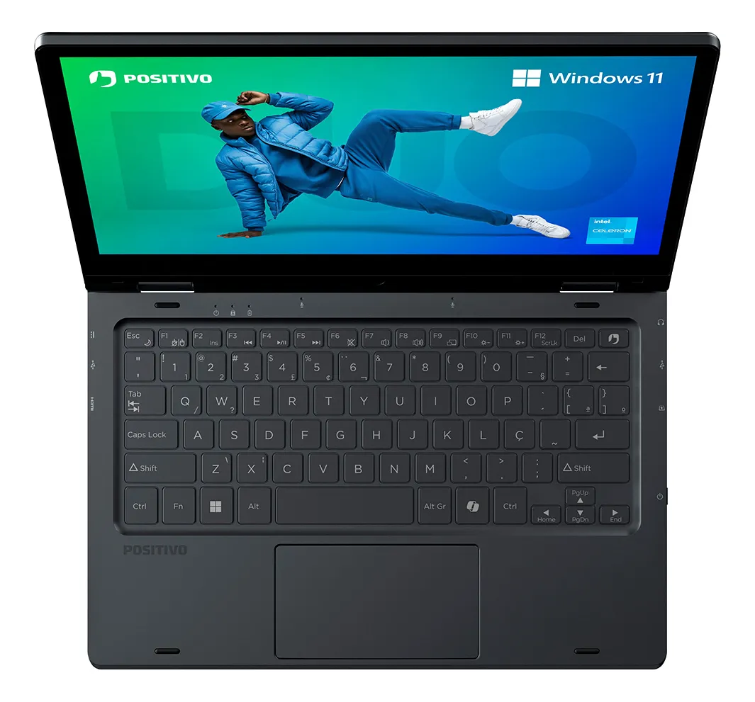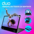 Leve, versátil e feito para o seu dia a dia! O novo Positivo DUO 2025 chegou para revolucionar sua rotina com mobilidade e praticidade. Projetado especialmente para quem estuda, trabalha e precisa de um notebook fácil de transportar, ele combina tela touchscreen de 11.6” com design ultraleve de apenas 1,15 kg. Com modo conversível, o DUO pode ser utilizado como tablet, em modo cabana, apresentação ou tradicional, adaptando-se às suas necessidades em qualquer ambiente. A nova versão traz melhorias importantes, como a webcam HD e conectividade Wi-Fi 5, garantindo videochamadas com mais qualidade e navegação mais rápida em redes 5GHz. Tudo isso com um visual moderno e teclas de atalho. Um dos destaques é a tecla Copilot, que ativa rapidamente os recursos de IA do Windows 11. Com ela, você tem acesso a assistentes inteligentes que ajudam a escrever textos, resumir conteúdos, organizar tarefas e até ajustar configurações com comandos simples. Tudo pensado para otimizar sua rotina e tornar a tecnologia ainda mais intuitiva e funcional. Ideal para estudantes e profissionais, o Positivo DUO entrega desempenho para tarefas essenciais como edição de textos, planilhas e navegação na web. O Notebook Positivo DUO se destaca por ser o único conversível de entrada no Brasil, oferecendo funcionalidade premium com um preço acessível. Seu formato compacto e os quatro modos de uso tornam a experiência muito mais dinâmica e intuitiva, seja para estudar, criar ou apresentar. Com design inteligente, bateria de longa duração e caneta capacitiva inclusa, o Positivo DUO é o notebook certo para quem precisa de tecnologia prática, leve e acessível — pronto para acompanhar você em qualquer lugar. Principais características: • Tela touchscreen conversível de 11.6” com resolução HD IPS; • Design ultracompacto e leve (1,15 kg), ideal para transporte diário; • Processador Intel Celeron N4500 com GPU integrada Intel HD Graphics; • Memória de 4GB ou 8GB LPDDR4 e armazenamento eMMC de até 256GB; • Sistema operacional Linux ou Windows 11; • Webcam HD de 1.0 MP para videochamadas com mais qualidade; • Wi-Fi 5 (b/g/n/ac) para melhor conexão em redes 5GHz; • Tecla Copilot e caneta capacitiva para mais interatividade; • 4 modos de uso: notebook, tablet, apresentação e cabana; • Bateria de 37Wh com autonomia estimada de até 6 horas*. Aviso legal • A duração da bateria depende do uso que se dê ao produto.