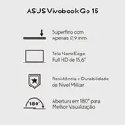 É leve. É compacto. É o ASUS Vivobook Go 15. Projetado para torná-lo produtivo e mantê-lo entretido onde quer que você vá! Com processador Intel Core i3-N305 de excelente desempenho, perfeito para seu dia a dia. Ainda conta com uma dobradiça plana de 180°, tampa física protetora na webcam e muitos recursos de design bem pensados — incluindo uma tela de 15 polegadas antirreflexo Full HD — tudo para que você vá além! Part Number: 90NB0ZT1-M00P30 SKU ASUS: E1504GA-NJ435W EAN Code: 7898573299807 Processador: Intel Core i3 N305 1,8 GHz, 6 MB Cache Memória RAM: 8 GB (8 GB Onboard + 0 GB Offboard) Armazenamento: 512 GB SSD Tela 15,60″ LED-backlit Anti-Glare Resolução da Tela: 1920×1080 Placa de Vídeo: Intel UHD Graphics Garantia 12 meses Tela Sensível ao Toque: Não Clock de Memória: 3200 MHz Wi-Fi 5 (802.11ac) (Dual band) 1*1 Tipo da Placa de vídeo: Integrada Teclado retro iluminado: Não Câmera Frontal: HD Bluetooth 5,1 Cartão de Memória: Não Áudio: Alto-falantes embutidos Microfone embutido Saídas: 1x USB 2.0 Type-A 1x USB 3.2 Gen 1 Type-A 1x USB 3.2 Gen 1 Type-C 1x HDMI 1.4 1x 3.5mm Combo Audio Jack 1x DC-in Adaptador de Energia: 45,00 W Bateria 3 Cells / 4000 mAh Sistema Operacional: Windows 11 Home Características: Especificações Militares US MIL-STD 810H Tampa de privacidade para a Webcam Peso do Produto: 1,63 Kg Dimensões: 36,03 cm X 23,25 cm X 1,79 ~ 1,79 cm Aviso legal • A duração da bateria depende do uso que se dê ao produto.