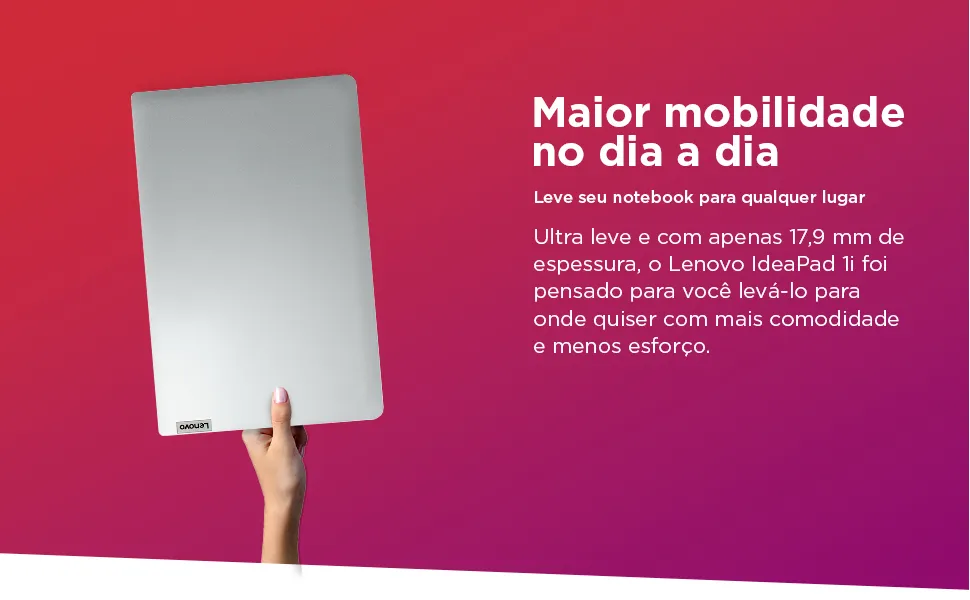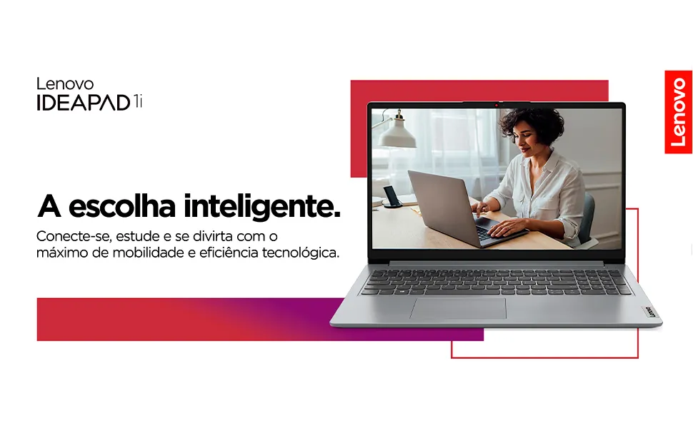 O IdeaPad™ 1i traz um processador Intel® de até a 13ª geração, super eficiente, em um chassi fino e compacto de 17,9 mm, tornando a multitarefa mais fácil, otimizando o consumo de energia e com carregamento rápido. Aproveite ainda mais com bordas finas em quatro lados para maximizar a tela, alto-falantes Dolby Audio™ e Flip to Start para inicialização instantânea. Melhore sua experiência em videochamadas com uma câmera HD que inclui obturador de privacidade para afastar olhares curiosos e cancelamento inteligente de ruído para eliminar sons de fundo. Aproveite ao máximo seu tempo de tela com um display de 15″ com resolução Full HD. Com um processador Intel® de até 13ª geração, você pode realizar multitarefas sem esforço, utilizar várias telas simultaneamente, se comunicar facilmente com amigos e familiares e levar todo o seu entretenimento para onde quiser. Mantenha sua produtividade de qualquer lugar com uma bateria de longa duração em uma única carga. E quando precisar, recarregue para mais 2 horas em apenas 15 minutos com o carregamento rápido. Sem Wi-Fi? Sem problemas! Com uma opção de SSD de 512 GB, você continua acessando e editando arquivos offline. Simplifique sua vida com recursos inteligentes como o Flip to Start, que liga o laptop automaticamente ao abrir a tampa. Aviso legal • A duração da bateria depende do uso que se dê ao produto.