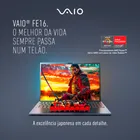 VAIO FE16: desempenho, durabilidade e estilo em um único dispositivo O VAIO FE16 é o notebook ideal para quem precisa de tecnologia avançada aliada a design moderno e confiável, seja para o dia a dia, estudos ou trabalho. Projetado para acompanhar o ritmo dos usuários mais dinâmicos, combina elegância e funcionalidade de forma única. Com uma tela IPS Full HD WUXGA de 16 polegadas, o VAIO FE16 oferece imagens nítidas e vibrantes, graças à tecnologia IPS, que mantém as cores consistentes e nítidas mesmo em ângulos de visão amplos. A resolução WUXGA (1920×1200 pixels) proporciona mais espaço vertical que o Full HD tradicional, permitindo a visualização de mais conteúdo na tela sem a necessidade de rolar tanto. A proporção 16:10 e o acabamento antirreflexo garantem conforto visual e produtividade, mesmo em ambientes muito iluminados, possibilitando longas horas de uso sem desconforto. Equipado com processadores AMD Ryzen Série 5000 e gráficos integrados Radeon, o VAIO FE16 oferece uma performance poderosa, sendo ideal tanto para tarefas rotineiras quanto para aplicações mais exigentes, como edição de vídeos e design. Com uma bateria de longa duração, que pode alcançar até 10 horas* de autonomia, o VAIO FE16 proporciona liberdade para trabalhar ou se divertir sem preocupações frequentes com tomadas. O design leve e sofisticado do VAIO FE16 facilita o transporte, com peso de apenas 1,85 kg e espessura de 19,8 mm. O teclado Comfort Key, resistente a derramamentos e com teclas maiores, assegura conforto durante a digitação, enquanto a tecnologia Ergo Lift eleva o teclado para otimizar a ergonomia e melhorar a refrigeração do sistema. O VAIO FE16 também se destaca em eficiência, com SSD NVMe de até 1TB e suporte para até 64GB de memória RAM, oferecendo alta velocidade para inicializações e multitarefas, o que maximiza a produtividade. A conectividade é um diferencial, com Wi-Fi 6 ultrarrápido, portas USB-C e USB 3.2 Gen 1, HDMI e entrada para cartão SD, que garantem versatilidade em diferentes situações. A webcam HD com bloqueador mecânico e os microfones duplos com cancelamento de ruído oferecem qualidade e privacidade excepcionais em videoconferências. Construído com a qualidade reconhecida da VAIO, o FE16 é robusto e resistente, suportando quedas de até 60 cm e teclados projetados para até 10 milhões de toques. É uma solução completa, desenvolvida para atender às demandas de quem precisa de desempenho e confiabilidade todos os dias. *O tempo da bateria pode variar conforme o uso. **Disponível em alguns modelos. • Tela de 16” IPS Full HD WUXGA Antirreflexo: Resolução de 1920×1200 pixels, proporção 16:10 e bordas finas, garantindo imagens nítidas e cores vibrantes com conforto visual; • Processadores AMD® Ryzen Série 5000: Até 8 núcleos e 16 threads, perfeitos para multitarefas, edição de vídeos e jogos leves, com alta eficiência energética; • Gráficos Integrados AMD Radeon: Qualidade visual ideal para edições gráficas, vídeos em alta definição e produtividade suave; • Memória RAM Expansível até 64GB: Dois slots DDR4 para desempenho fluido e suporte a tarefas intensivas; • Armazenamento SSD NVMe de até 1TB: Inicializações rápidas e execução ágil, com espaço amplo para arquivos e programas; • Bateria Smart de Longa Duração: Até 10 horas de autonomia com capacidade de 55Wh, perfeito para quem precisa de liberdade e praticidade no dia a dia; • Wi-Fi 6 Ultrarrápido: Conexão até 3x mais veloz e com 75% menos latência que o Wi-Fi 5; • Teclado Comfort Key com Teclado Numérico: Resistente a derramamentos, com teclas maiores que garantem conforto em longas digitações, enquanto o teclado numérico facilita a produtividade em tarefas específicas; • Ergo Lift: Eleva o teclado automaticamente ao abrir a tela, proporcionando uma experiência ergonômica e melhor ventilação do sistema; • Webcam HD com Bloqueador: Resolução 720p com cancelamento de ruído e proteção de privacidade; • Design Compacto e Leve: Apenas 1,85 kg e 19,8 mm, unindo portabilidade e elegância. Aviso legal • A duração da bateria depende do uso que se dê ao produto.