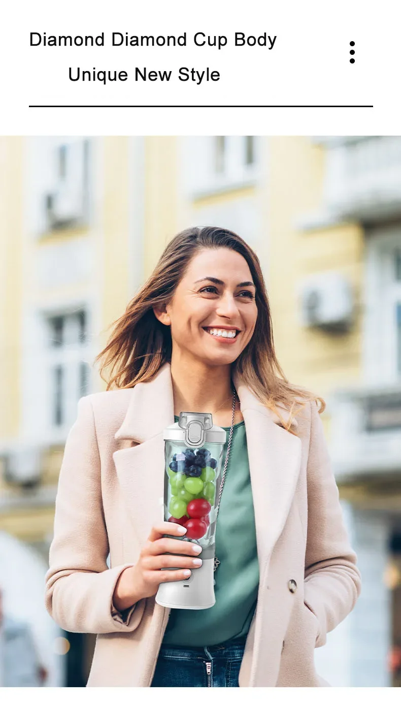 Liquidificador aprimorado e livre de BPA】Nosso liquidificador para shakes e smoothies é feito de PGTC atóxico, livre de BPA e com materiais de qualidade alimentar. Você pode preparar sucos de frutas, smoothies, papinhas para bebês e máscaras faciais a qualquer momento. Com capacidade de 600 ml e bateria integrada de 4000 mAh e 7,4 V, a capacidade da bateria dobrada torna nosso liquidificador portátil 3 vezes mais potente do que os liquidificadores pessoais tradicionais para smoothies. Possui porta de carregamento USB-C. O liquidificador é portátil e você pode usá-lo em qualquer lugar: no escritório, na academia, ao ar livre, etc.