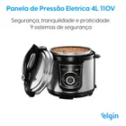 MODERNIDADE E PRATICIDADE! A Panela de Pressão Elétrica Elgin de 4 Litros é a escolha ideal para quem busca praticidade e eficiência na cozinha. Com uma potência de 840 W, este eletrodoméstico permite preparar refeições de forma rápida e segura, mantendo todos os nutrientes dos alimentos. Seu sistema de cozimento a pressão garante que os pratos fiquem saborosos e suculentos, enquanto a função de desligamento automático proporciona tranquilidade durante o uso. Com um design elegante na cor preta e tampa em aço inoxidável, a panela não só é funcional, mas também se destaca na sua cozinha. O revestimento antiaderente facilita a limpeza, tornando o processo de cozinhar ainda mais agradável. Além disso, a panela conta com a função de manter aquecido, ideal para quem gosta de saborear suas refeições no tempo certo. ……………………………..…………………………………………………….. DIMENSÕES E PESO: Altura: 31 cm Comprimento: 32 cm Peso: 3,8 kg Garantia de fábrica: 1 anos