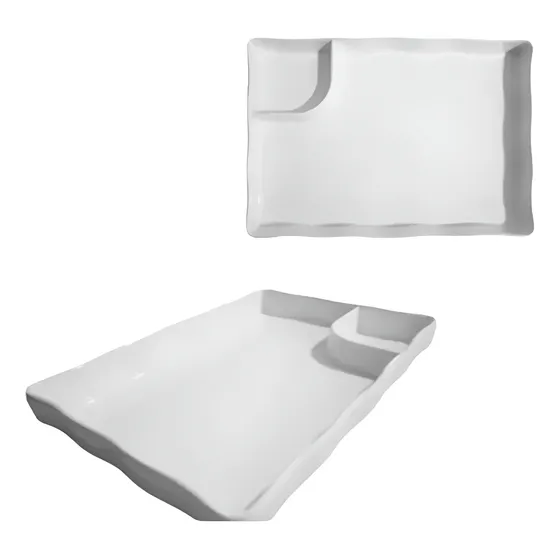 Prato Retangular Com Molheira Melamina Branco 21×14,5cm Kit 12 Unidades