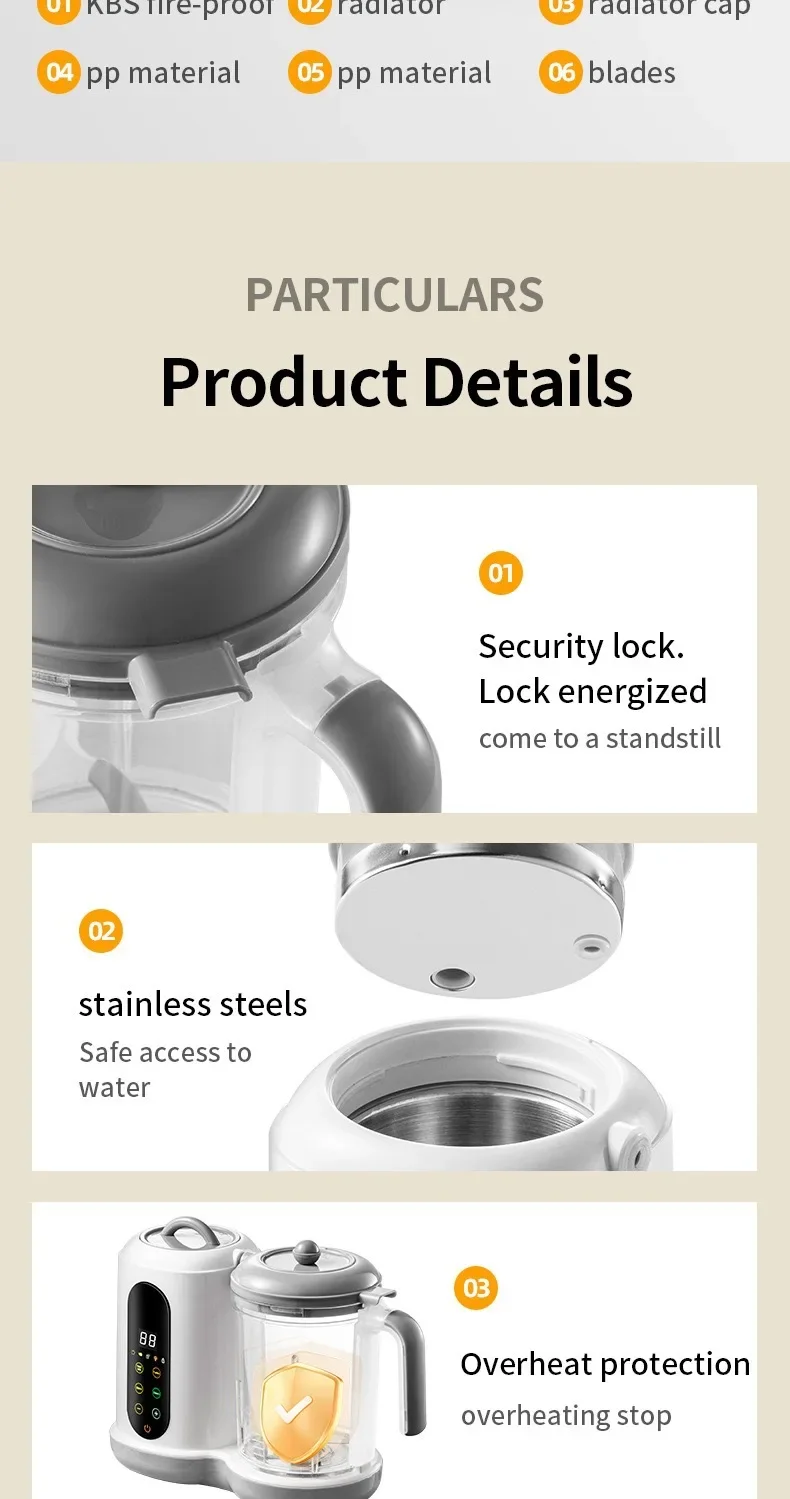 Nome do produto: Processador de alimentos para bebês com função de vapor e liquidificador