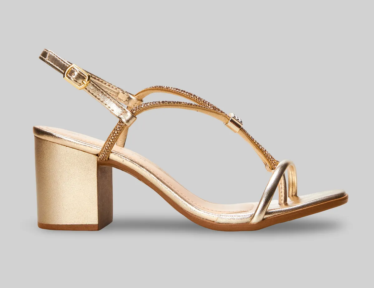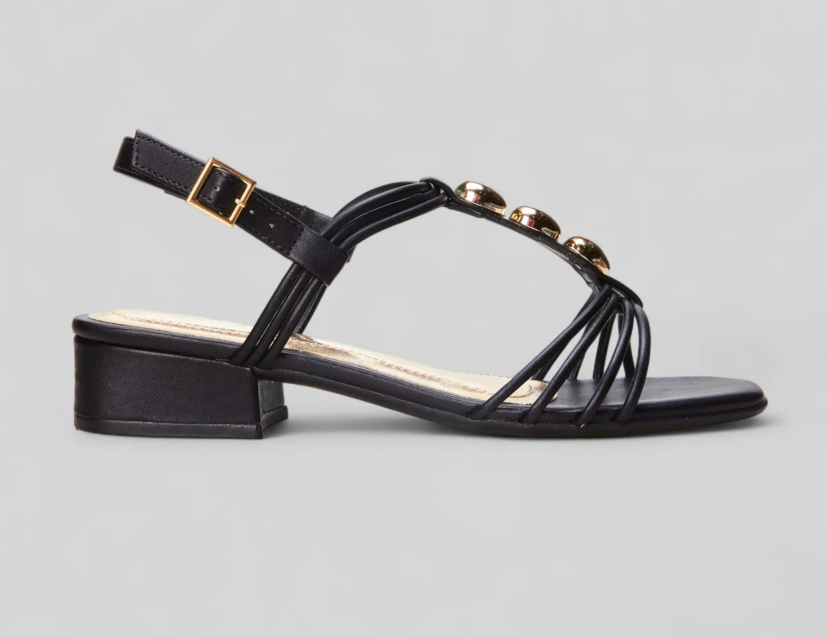 Sandália Feminina Ramarim Saltinho Baixo Tira Nó Strass
