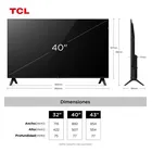 A Smart TV TCL QLED 40″ entrega imagens vivas e cheias de cor com a tecnologia Colorful Quantum Crystal e HDR10. A tela HVA amplia ângulos de visão e reduz reflexos, oferecendo mais contraste e eficiência. O design sem bordas traz sofisticação, enquanto o Dolby Audio envolve você com um som poderoso. Compatível com Google Cast para máxima conectividade. Modelo: 40S5K PN: 40S5K Cor: Preto Marca: TCL Tela QLED: com tecnologia Colorful Quantum Crystal para cores vibrantes e longa durabilidade; HDR10 com brilho e contraste otimizados; Tela HVA com 3x mais contraste, baixo reflexo, maior eficiência energética e ângulo de visão superior a 178 graus; Áudio: Dolby Audio com som imersivo, diálogos nítidos e clareza cristalina; Conectividade: Google Cast para transmissão de conteúdos do smartphone direto para a tela; Design: Design sem bordas, minimalista e elegante, com máximo aproveitamento de tela; Configurações de Vídeo: Formato De Tela: WideScreen 16:9 Tipo De Painel: QLED HVA Resolução Em Pixel: 1920 x 1080 (Full HD) Frequência Real: 60 Hz Modo De Imagem: Customizado, Padrão, Dinâmico, Esporte, Filme, Jogos e Economia de energia HDR: Sim (HDR 10+ HLG) Ajuste De Cor: Frio, Padrão, Quente e Personalizado Tempo De Resposta Do Painel: 6,5 ms Sistema Operacional: Android TV Interface: Google TV Recursos Smart, TV e Áudio: Aplicativos: YouTube, Netflix, GloboPlay, YouTube Music, Disney+, Directv GO, Prime Video, Apple TV, Spotify, HBO Max, Twitch, Deezer, Star+ (ASSINATURAS NÃO INCLUSAS) Memória Interna: 8GB TV Digital: Sim Ginga: Sim Idiomas: Português, Inglês ou Espanhol Funções Adicionais: Acessibilidade para deficiente visual, closed caption/legenda, perfil infantil, relógio, sleep timer e TCL Channel Conexões: 01 x Porta LAN; 02 x HDMI, sendo uma delas HDMI ARC/eARC; 01 x USB; 01 x Entrada AV; 01 x Entrada para Antena/Cabo; 01 x Saída Áudio digital (óptica); 01 x Entrada P3 (Fone de Ouvido); 01 x WiFi Integrado (Dual Band 2.4 GHz e 5 GHz); 01 x Bluetooth 5.0; 01 x Google Cast Integrado; Configurações de Áudio: Modo Som: Dinâmico, Padrão, Esporte, Filmes, Música, Voz e Jogos Dolby Audio: Sim Potência De Áudio: 2 x 10 W RMS Energia: Voltagem: Bivolt Frequência: 50/60Hz Consumo Máximo: 80 W Consumo Stand By: < 0,5 W Anatel: 011042510435 VESA: 100x100 mm Conteúdo da Embalagem: 01 x Smart TV; 01 x Controle Remoto; 01 x Certificado de Garantia; Garantia: 12 meses com a fabricante Fabricante: TCL Dimensões sem Base (L x A x P): 89,2 x 50,8 x 8 cm Dimensões com Base (L x A x P): 89,2 x 56 x 18,5 cm Peso: 4,7 Kg Garantia de fábrica: 12 meses