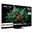 A MELHOR OPÇÃO DE TELEVISÃO PARA VOCÊ! Experimente o futuro do entretenimento com a TCL C7K 75” QD-Mini LED 4K, uma TV de última geração que combina tecnologia de ponta, qualidade de imagem impressionante e recursos inteligentes para transformar sua sala em um verdadeiro cinema. ————————– Principais Características: Tela de 75 polegadas 4K Ultra HD (3840 x 2160): Imagens com altíssimo nível de detalhes, cores vibrantes e contraste impactante para uma experiência cinematográfica. Tecnologia QD-Mini LED: Iluminação mais precisa e brilhante, com pretos profundos e controle de contraste local (Local Dimming) para maior realismo em qualquer cena. Quantum Dot (QLED): Cores mais puras e precisas com ampla cobertura do espectro de cores (Wide Color Gamut). Google TV Integrado: Interface inteligente e intuitiva, com acesso a apps como Netflix, YouTube, Disney+, Prime Video, entre outros. Reúna todos os seus conteúdos favoritos em um só lugar. Dolby Vision IQ e Dolby Atmos: Qualidade de imagem e som premium. Visual e áudio adaptados ao ambiente para maior imersão. 120Hz com VRR e AMD FreeSync Premium: Ideal para gamers – imagens fluidas e sem rasgos, com taxa de atualização variável. Controle por voz com Google Assistente e compatibilidade com Alexa. Conectividade completa: Wi-Fi, Bluetooth, HDMI 2.1, USB, eARC, e mais.